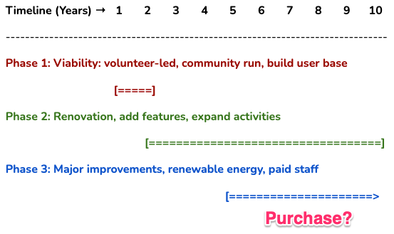Aim to make building more attractive to increase use (to fund staff, offset hourly rate and/or fund improvements).